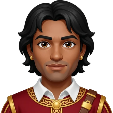 Othello from Otello with brown eyes, black hair, gold earrings, crimson tunic emoji