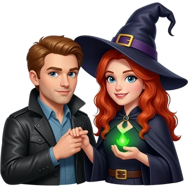 White man bewitched by redheaded witch emoji