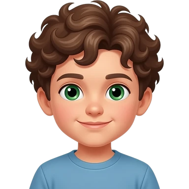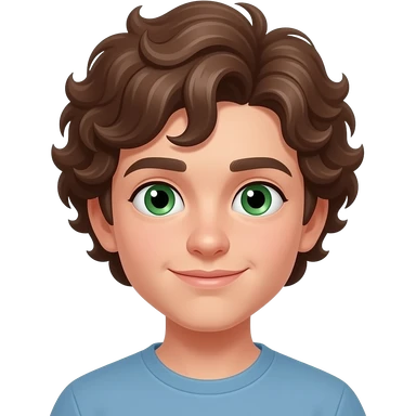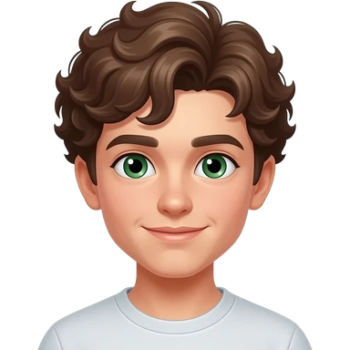 Emoji de chico adolescente con rulos marrones y ojos verdes emoji