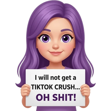 girl with long purple hair with a I will not get a TIKTOK CRUSH.... OH SHIT! sign emoji