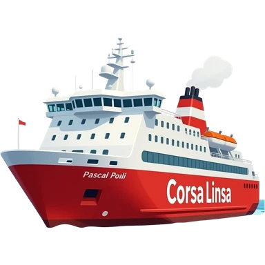 "Emoji du ferry Pascal Paoli de Corsica Linea, vue 3/4, coque rouge, style cartoon emoji, couleurs vives, contours nets, mer en fond, rendu propre et moderne emoji