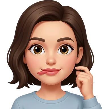 Emoji with wide eyes biting their lip and tucking hair behind their ears emoji