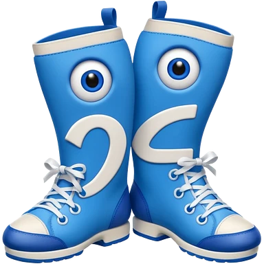 2 blue numbers 6 and 7 fused together, with cartoons eyes and blue shoes with white laces. Blue arms too. emoji