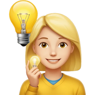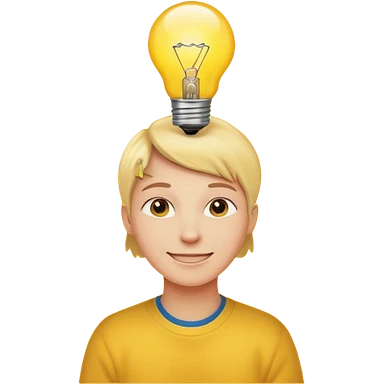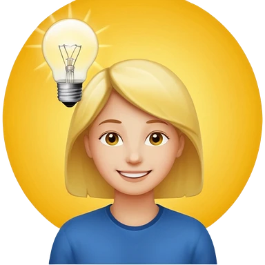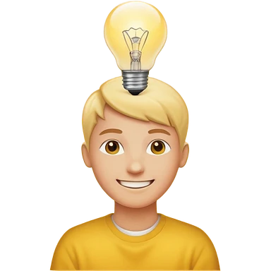 uma pessoa sorrindo pensando e surge uma boa ideia na lampada emoji