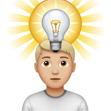 uma pessoa pensando e surge uma boa ideia na lampada emoji