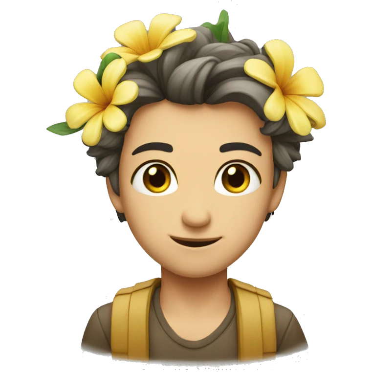 Un emoji de corista sonriente que este sosteniendo una flor amarilla emoji