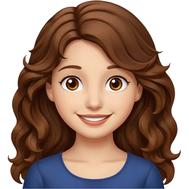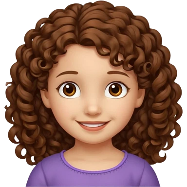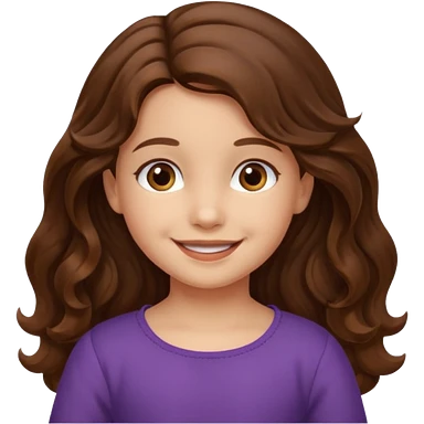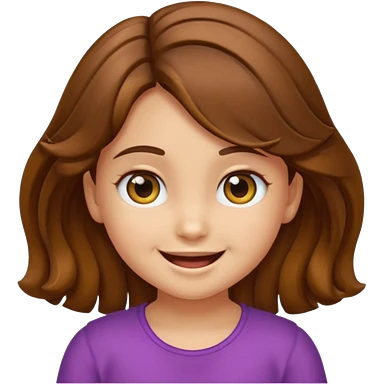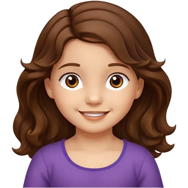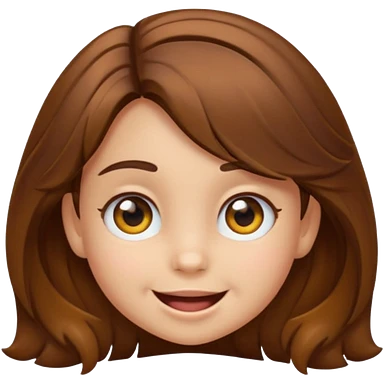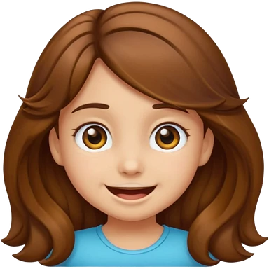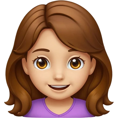 EMOJI COMO LOS DEL IPHONE IOS. SOLO CARA NIÑA, SIN EL CUELLO. 3 AÑOS. PELO LARGO, ONFULADO, MARRON SEMIRECOGIDO, Y OJOS MARRONES. SONRIENDO, Y FONDO TRANSPARENTE emoji | AI Emoji Generator