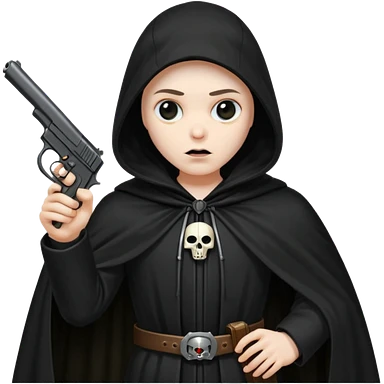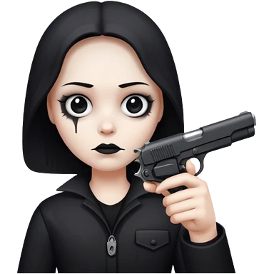 Quiero un emoji con lentes negros con una pistola automática en la mano riéndose y pasandose la pistola por la cara emoji