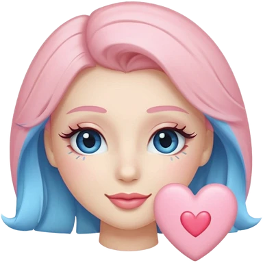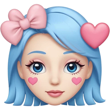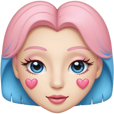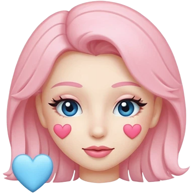 Coquette wink emoji, long eyelashes, heart-shaped blush, soft pastel pink and blue palette, glossy finish, transparent background emoji
