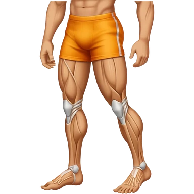 Emoji-style illustration of a single muscular and defined human leg, showing visible muscle lines and a strong, shredded look. Isolated from the body. Smooth, clean vector emoji style, bright flat colors, bold outlines, minimal shading, rounded shapes, high-resolution emoji aesthetic. emoji