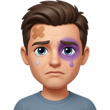 Emoji With Purple Punch Eye And A Band-Aid In The Forehead About To Cry emoji