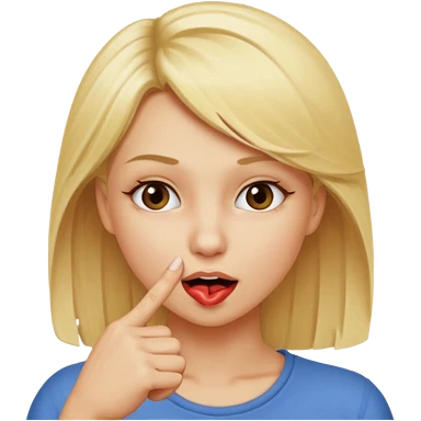 Mujer rubia con el dedo mordiéndose el dedo índice de lado emoji