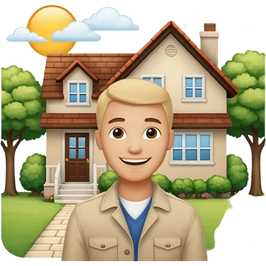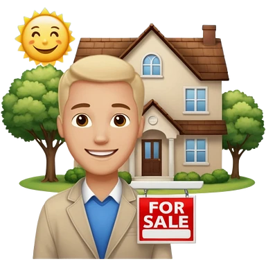 emoji de bienes y raices, un hombre y una casa en "venta for sale" sin sol emoji | AI Emoji Generator