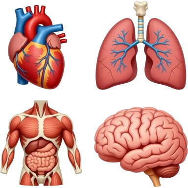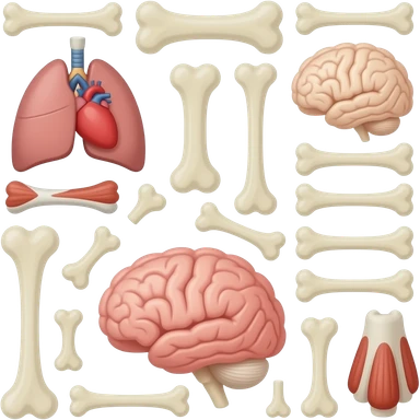 Dónde muchos huesitos, corazón, pulmones, músculos, cerebro, de diferentes tamaños emoji