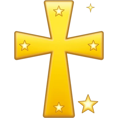 cruz sagrada cor amarelo CMYK com brilho e estrelas emoji
