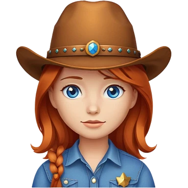 Crea un emoji de una cara DE UNA chica con sombrero de vaquero cabell cobrizo y ojos azules emoji