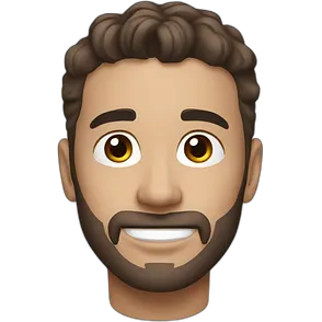 Un emoji de un hombre joven de cabello corto con barba corta cejas medianemente pobladas labios gruesas ojos cafés oscuros , con figura atlética , camiseta de color negro emoji