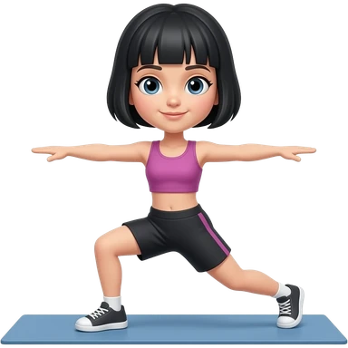 chica de cabello oscuro y corto, con ojos color cafe, haciendo ejercicio emoji