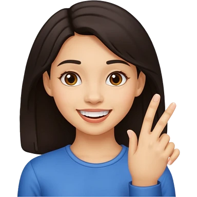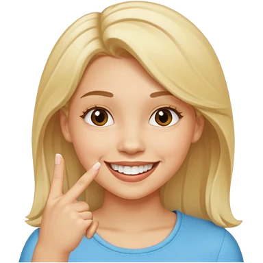 Emoji de una chica con el dedo sobre una esquina de los dientes sonriendo de forma coqueta emoji