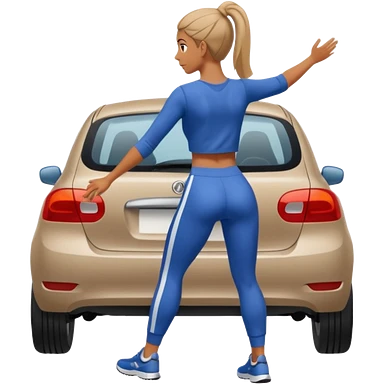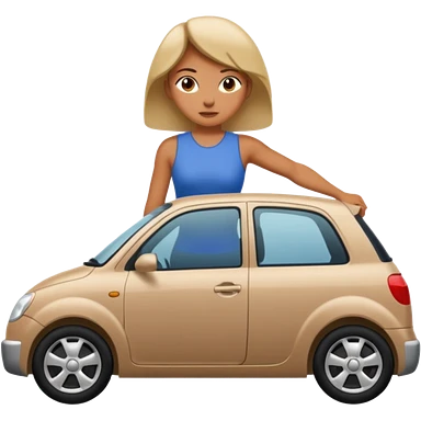 mujer empujando un carro automovil por la parte trasera emoji