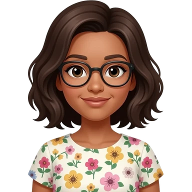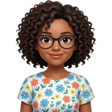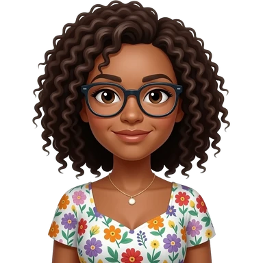 Cara Guera ,cabello chino con lentes con vestido floreado emoji