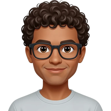 Chica piel guera, ojos cafes oscuros,cabello rizado y lentes emoji