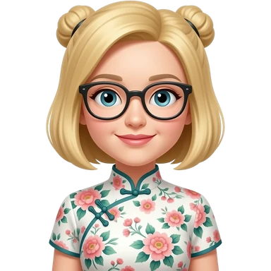 Guera ,cabello chino con lentes con vestido floreado emoji