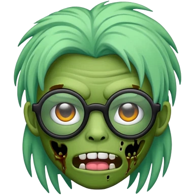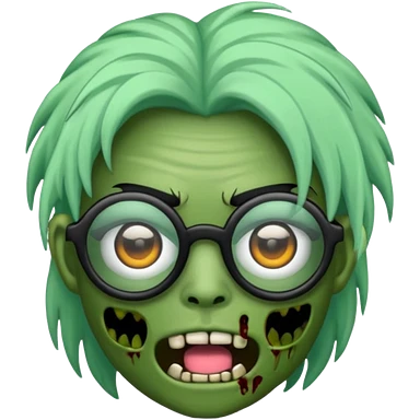 crie um emoji de zumbi feminino, com pele verde, óculos preto e cabelo longo preto emoji