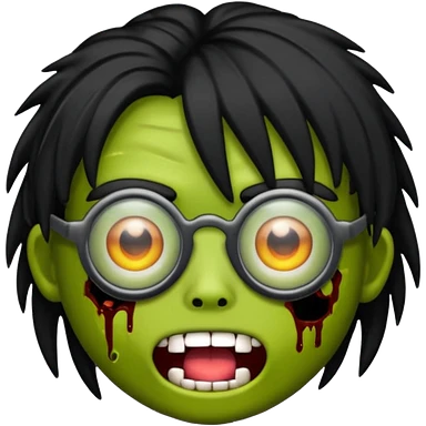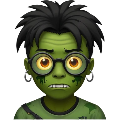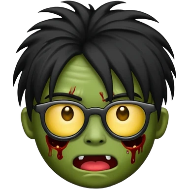 Emoji de zombi com óculos e cabelo preto emo emoji | AI Emoji Generator