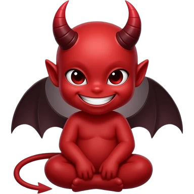 red devil emoji, horns, sitting pose, dark aura, sharp grin, minimal, clean, centered, transparent background emoji