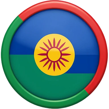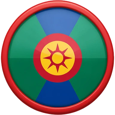 Emoji drapeau gitan bleu en haut vert en bas avec une roue rouge au millieu roue en plein millieu du drapeau emoji