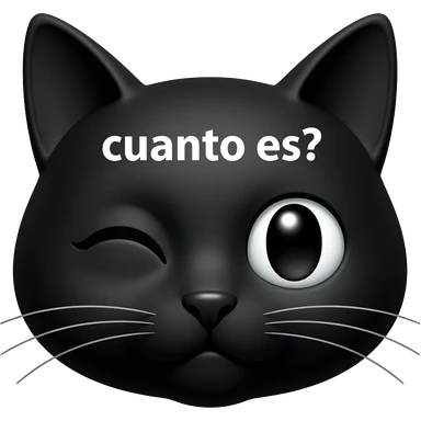 Emoji Cara negra de felino un ojo cerrado guaoi con la palabra cuanto es? ó how much? emoji