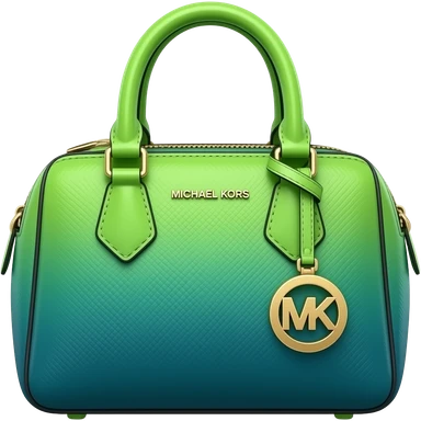 Hyper-realistic neon lime green to dark teal blue ombre, highly detailed Michael Kors satchel handbag purse with no strap, isolated 3d render, 8k. No emoji icons, no emoji faces emoji