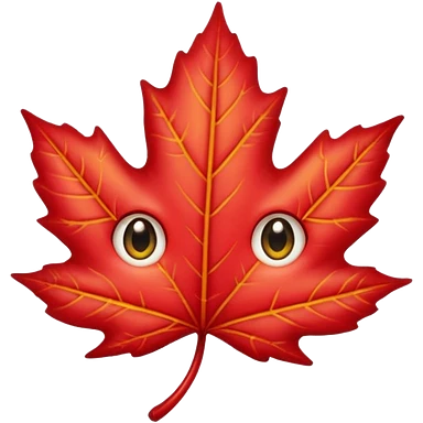 emoji, feuille d'érable couleur vermeille, deux yeux ronds noirs brillants emoji