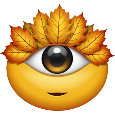 emoji, feuille d'érable couleur vermeille, deux yeux ronds noirs brillants
