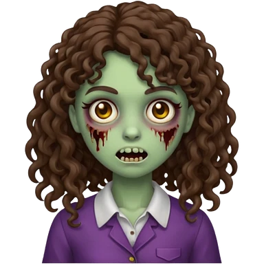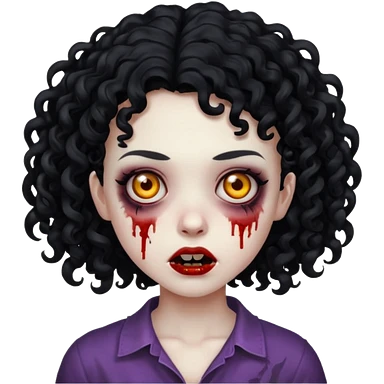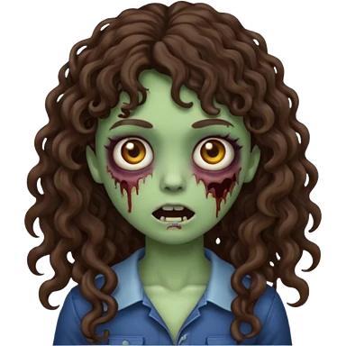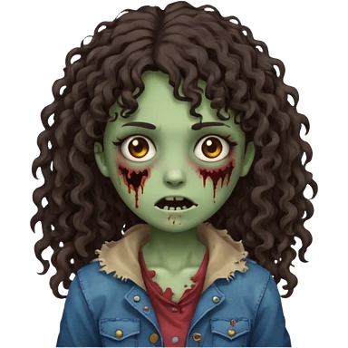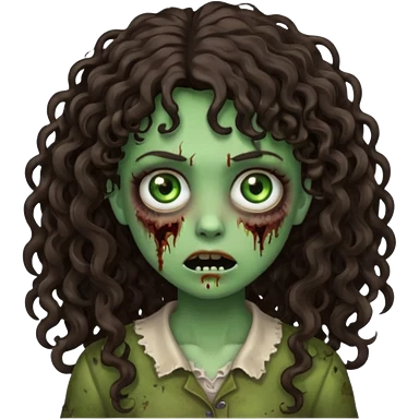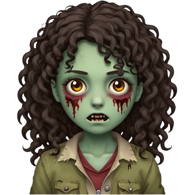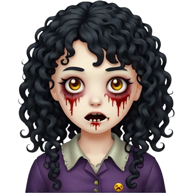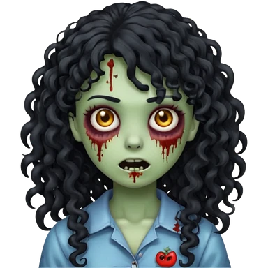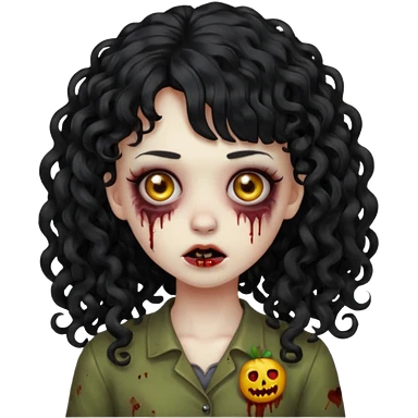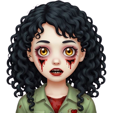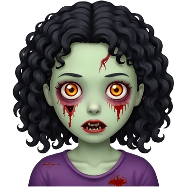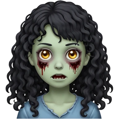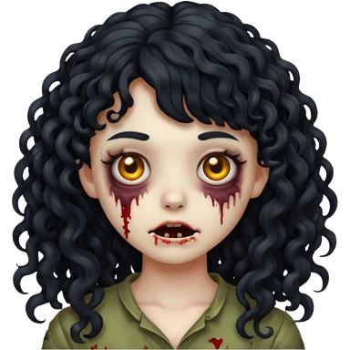 Emoji garota zombie sem ferimentos no rosto com cabelo preto cacheado longo com franja cacheada sem volume emoji | AI Emoji Generator