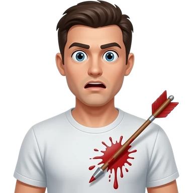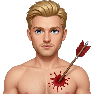 A blonde man getting hit in the chest with an arrow, not graphic, no blood, old fashioned emoji style emoji