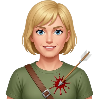 A blonde person getting hit in the chest with an arrow, not graphic, no blood, old fashioned emoji style emoji