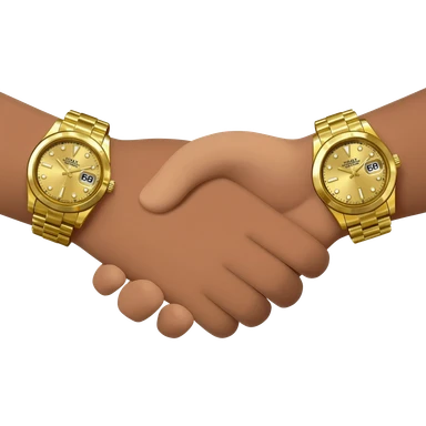Emoji of a handshake, each wrist wearing an oversized, flashy Rolex watch, cartoon style, bold colors, focus on hands and luxury watches, transparent background emoji
