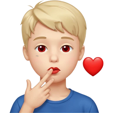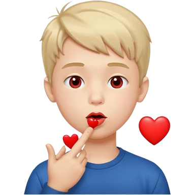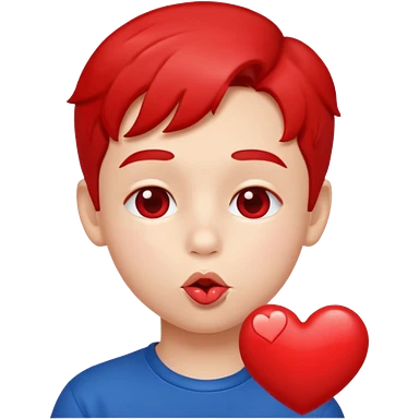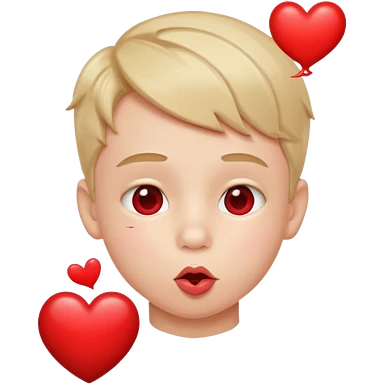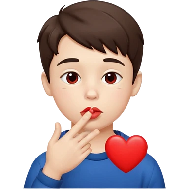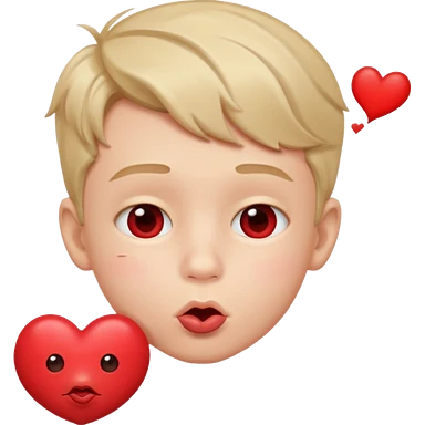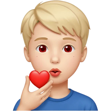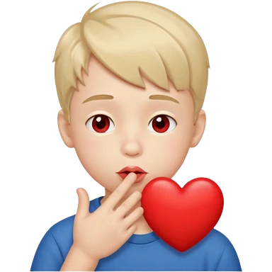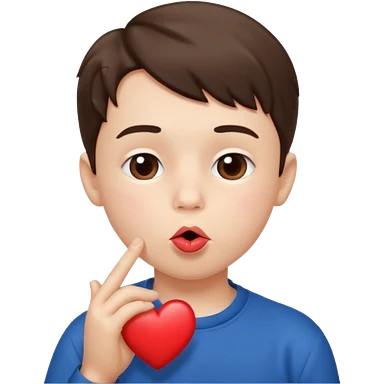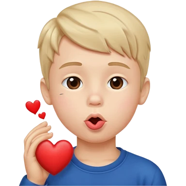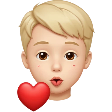 Emoji, boy's face blowing a kiss, puckered lips, small heart emoji