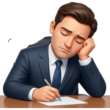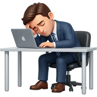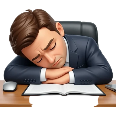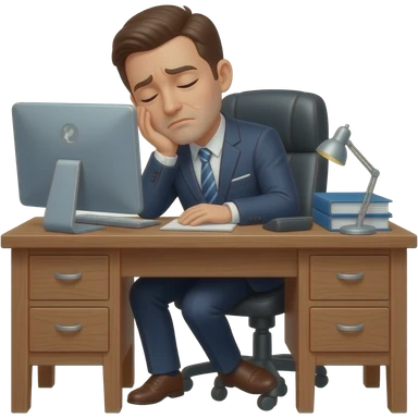 hombre con traje,CANSADO,sentado,reposandose en su escritorio,simple emoji