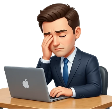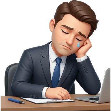 hombre con traje,exausto,sentado,reposandose en su escritorio,simple emoji