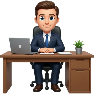 hombre con traje,,sentado,reposandose en su escritorio,simple emoji