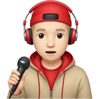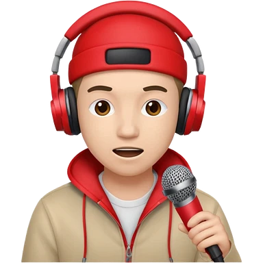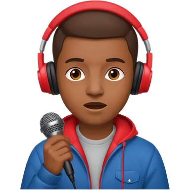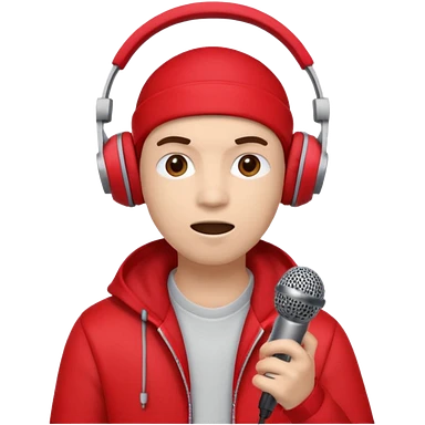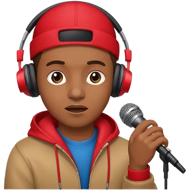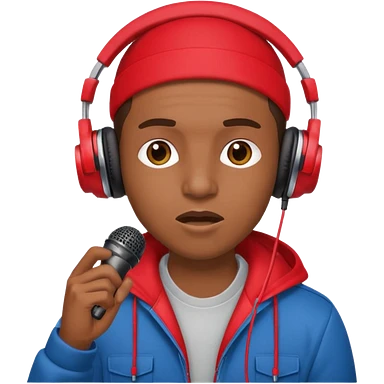 emoji de persona haciendo beatbox con un micrófono y unos audífonos rojos puestos emoji
