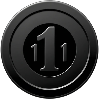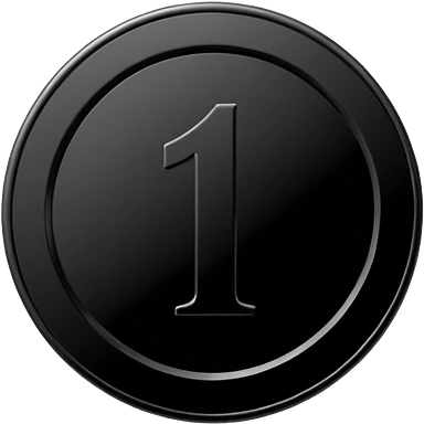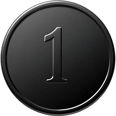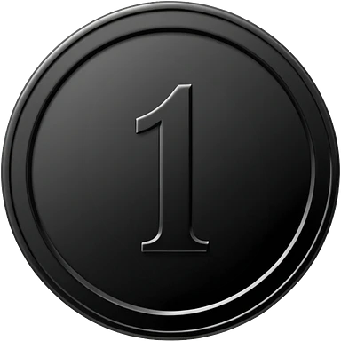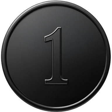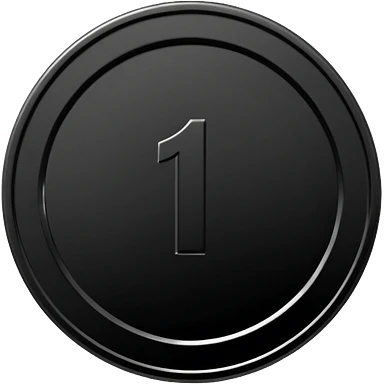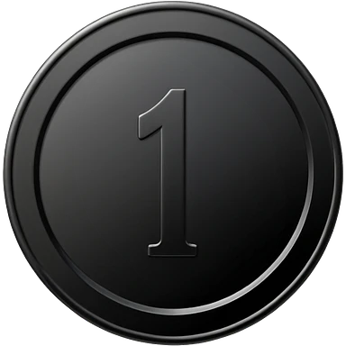 Emoji icon of a black coin with engraved number 1, minimalist style, isolated emoji
