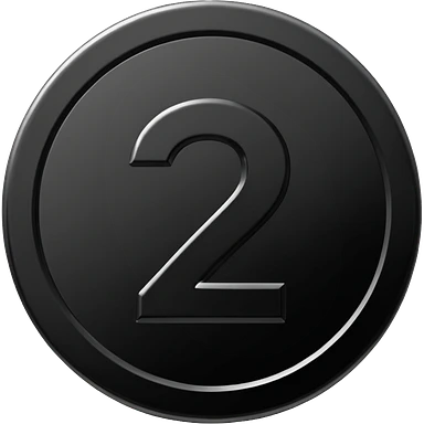 Emoji icon of a black coin with engraved number 2, minimalist style, isolated emoji
