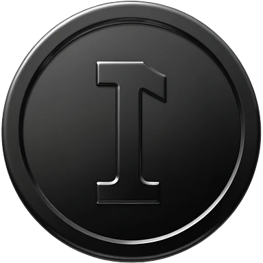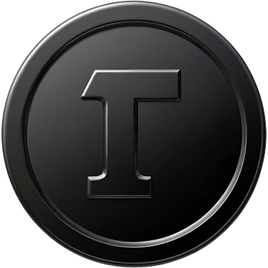 Emoji icon of a black coin with engraved letter F, minimalist style, isolated, only black color emoji