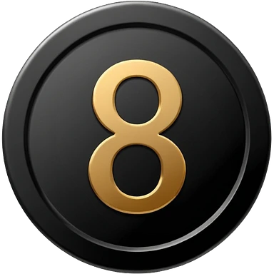 Emoji icon of a black coin with engraved number 8, minimalist style, isolated emoji