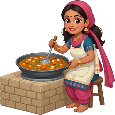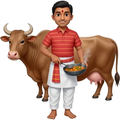 make an emoji of an Indian cooking curry with feet with a cow in the background emoji