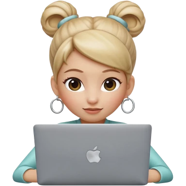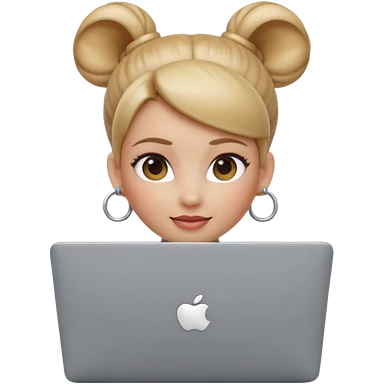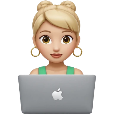 3D Apple Memoji–style emoji, female character with high bun and hoop earrings, peeking over a silver laptop, soft lighting, smooth plastic texture, transparent PNG, 4K. emoji